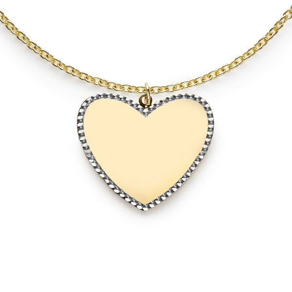 ZINZI Gold 14 karaat gouden hanger met glanzend hartje van 19mm en met chique witgouden parelrand. Ideaal voor een gravure. Maximaal 7 letters. Vervaardigd van geheel 14 karaat goud (585).