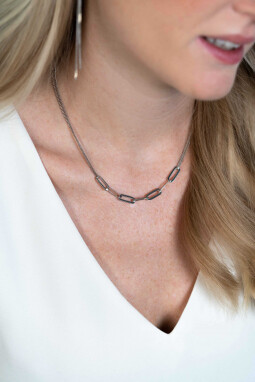 De zilveren schakelketting is er met allerlei soorten schakels. Populair is de jasseron schakelketting in zilver, maar ook de zilveren gourmet ketting is erg geliefd. Trendy op dit moment is het dragen van meerdere zilveren kettingen. Combineer jouw zilveren schakelketting bijvoorbeeld met een minimalistische ketting of een ketting met steen en maak er een necklace party van. Natuurlijk blijft de zilveren schakelketting ook heel geschikt om als eyecatcher te dragen. Met een schakelketting in zilver kun je werkelijk waar alle kanten op. Draag jij doorgaans meer goudkleurige of gouden sieraden? Neem dan een kijkje bij onze gouden schakelkettingen.
