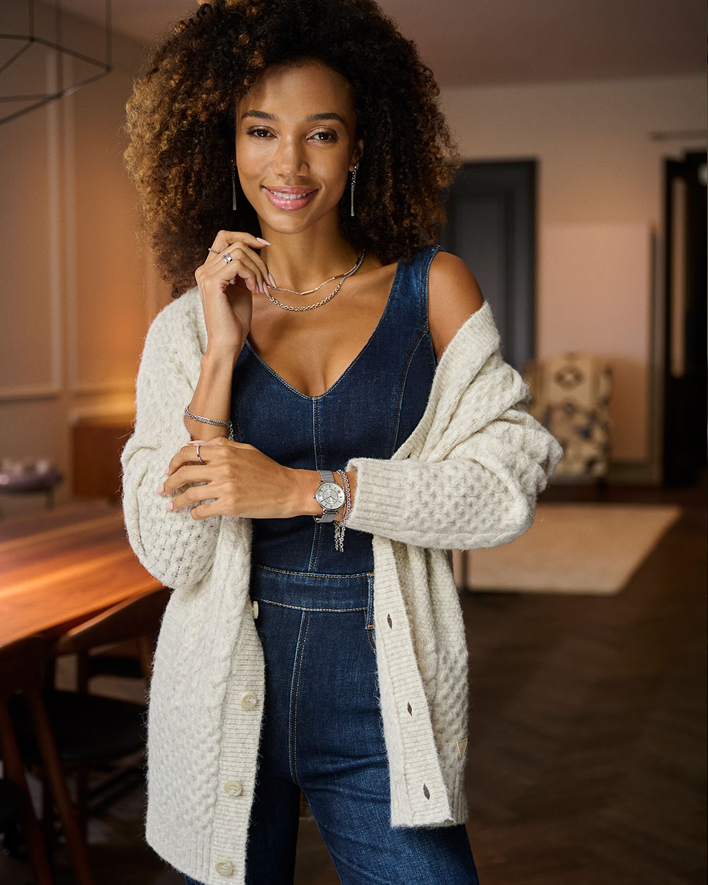 Laat je dit voorjaar inspireren door zilveren vormen met een zachte twist. Combineer ze met een tijdloos horloge en speelse setjes ringen. Sieraden waarmee je elke dag weer nieuwe combinaties kunt maken. De warme trendkleur chocoladebruin vormt het perfecte decor voor deze stijl en laat gold plated accenten extra stralen. Door zilver en goud subtiel te mixen ontstaat een elegante look. Maak het geheel af met statement sieraden die net dat beetje extra geven en je outfit een krachtige, luxe uitstraling bezorgen.