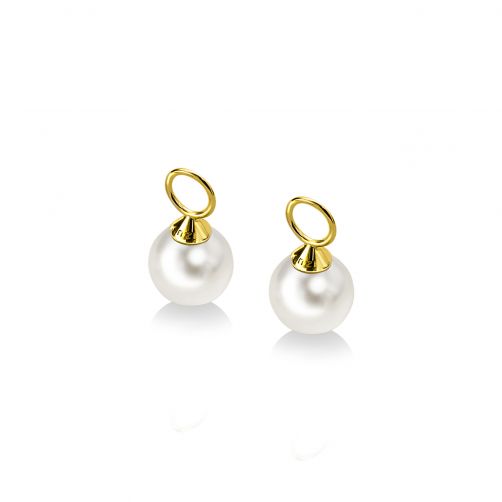 ZINZI Gold 14 karaat gouden oorbedels parel wit 8mm ZGCH144 (zonder oorringen)