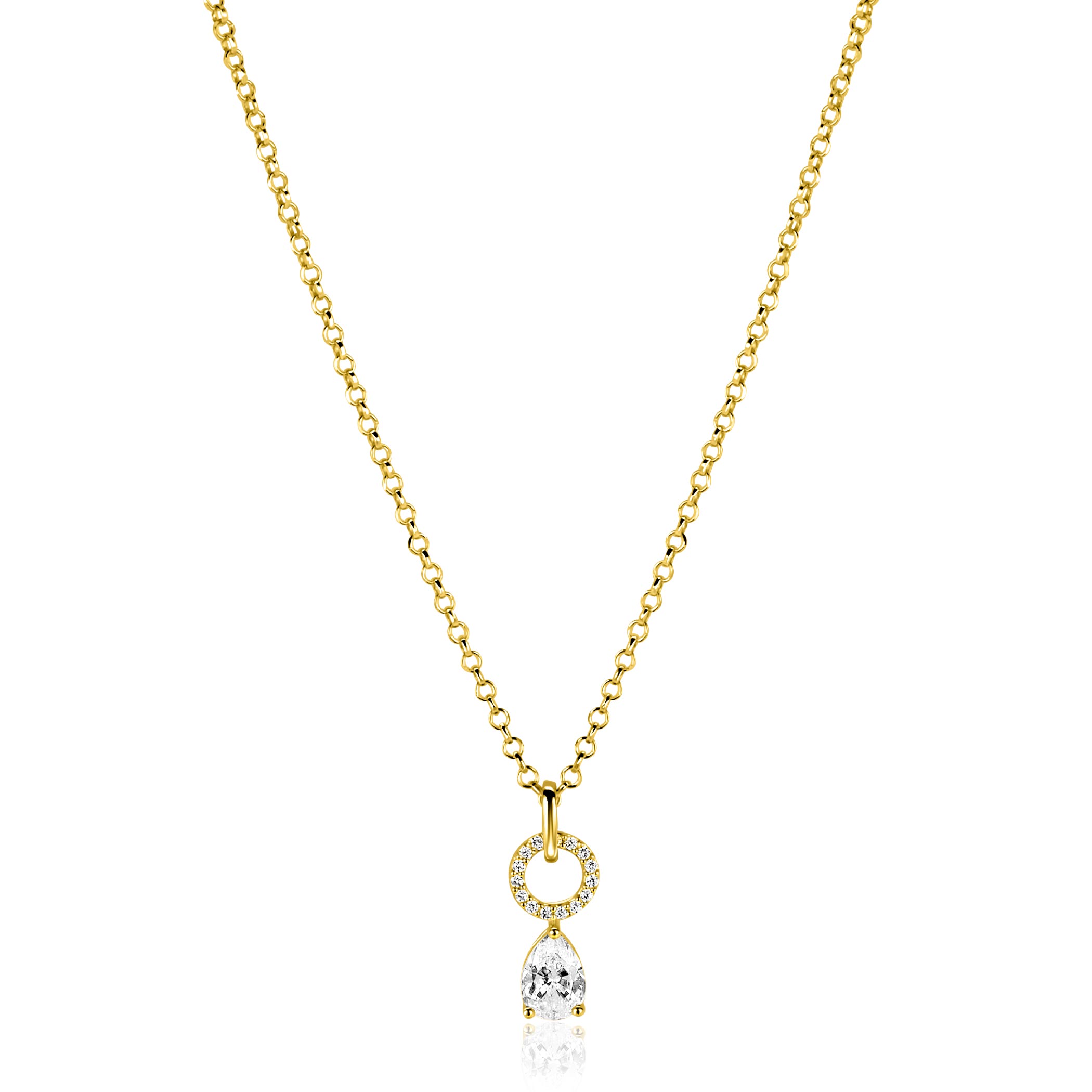 ZINZI gold plated zilveren ketting 45cm met open rondje witte zirconia's en peervormige hanger ZIC2796