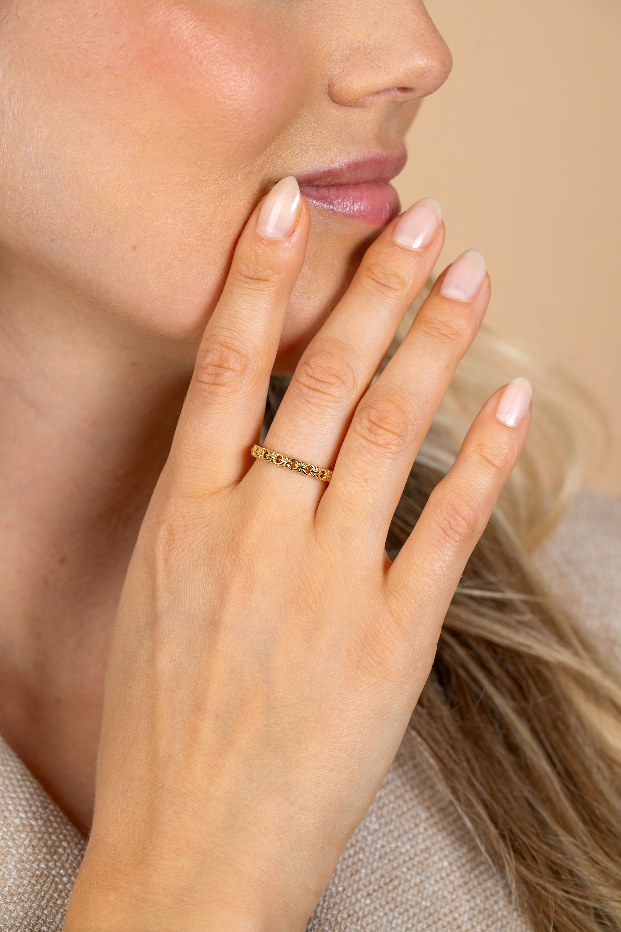 ZINZI goldplated zilveren aanschuifring met fantasie schakels ZIR2802