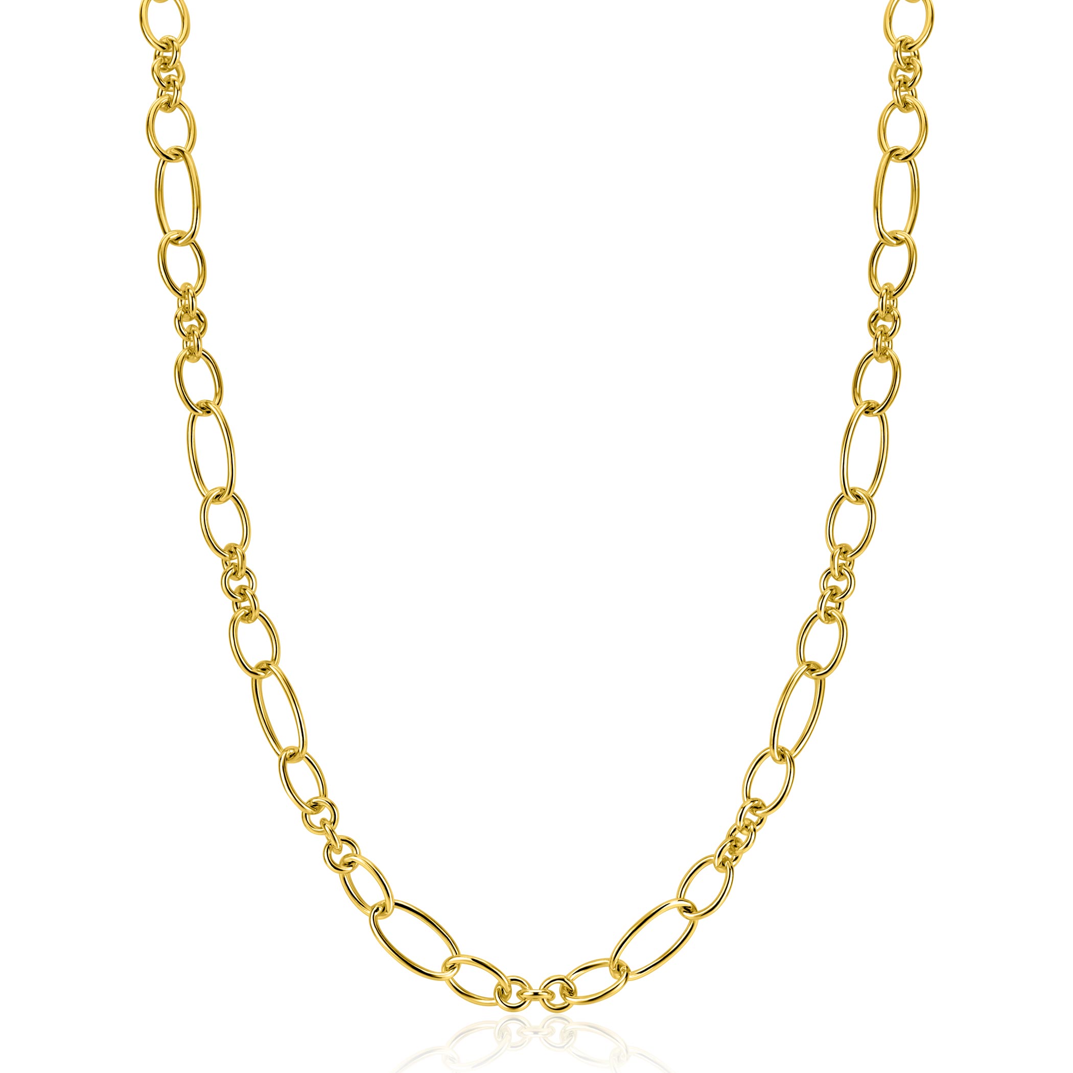 ZINZI goldplated zilveren schakelketting 45cm met speelse combinaties van ronde en ovale schakels ZIC2706G