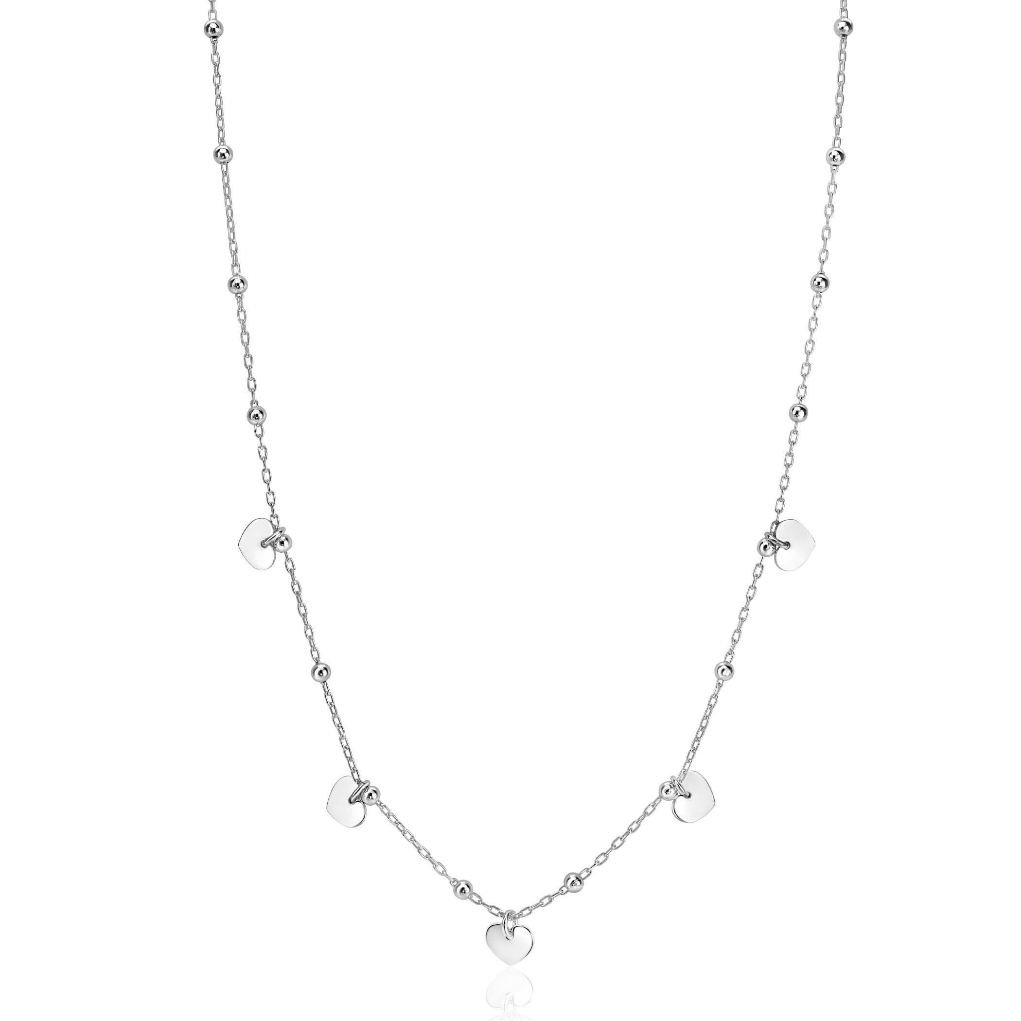ZINZI zilveren ankerketting met kleine bolletjes en vijf gladde hartjes 42-45cm ZIC2531