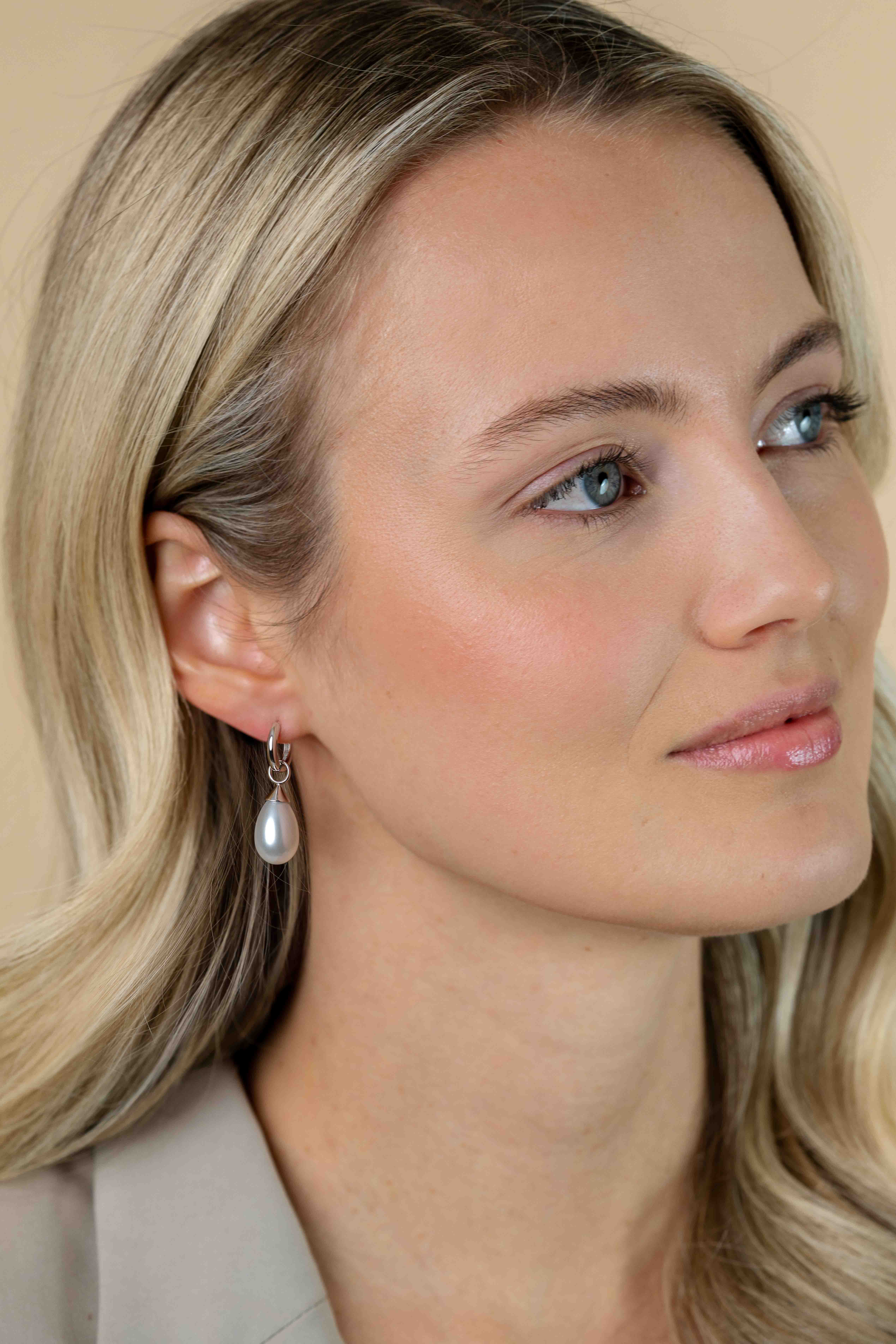 ZINZI zilveren oorbedels parel peervorm 15mm wit ZICH355W (zonder oorringen)