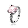 ZINZI zilveren ring met roze zirconia. De scheen van de ring heeft een gedraaid effect. De grote zirconia springt er uit en zorgt dat de ring niet onopgemerkt blijft. Trek de aandacht en laat zien hoe glamorous je bent!